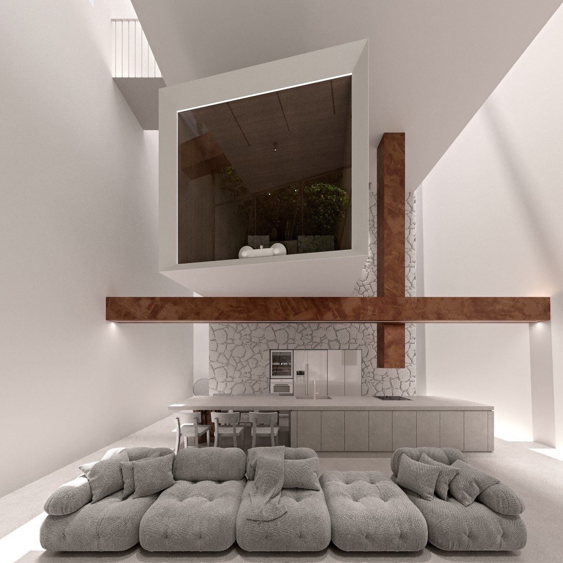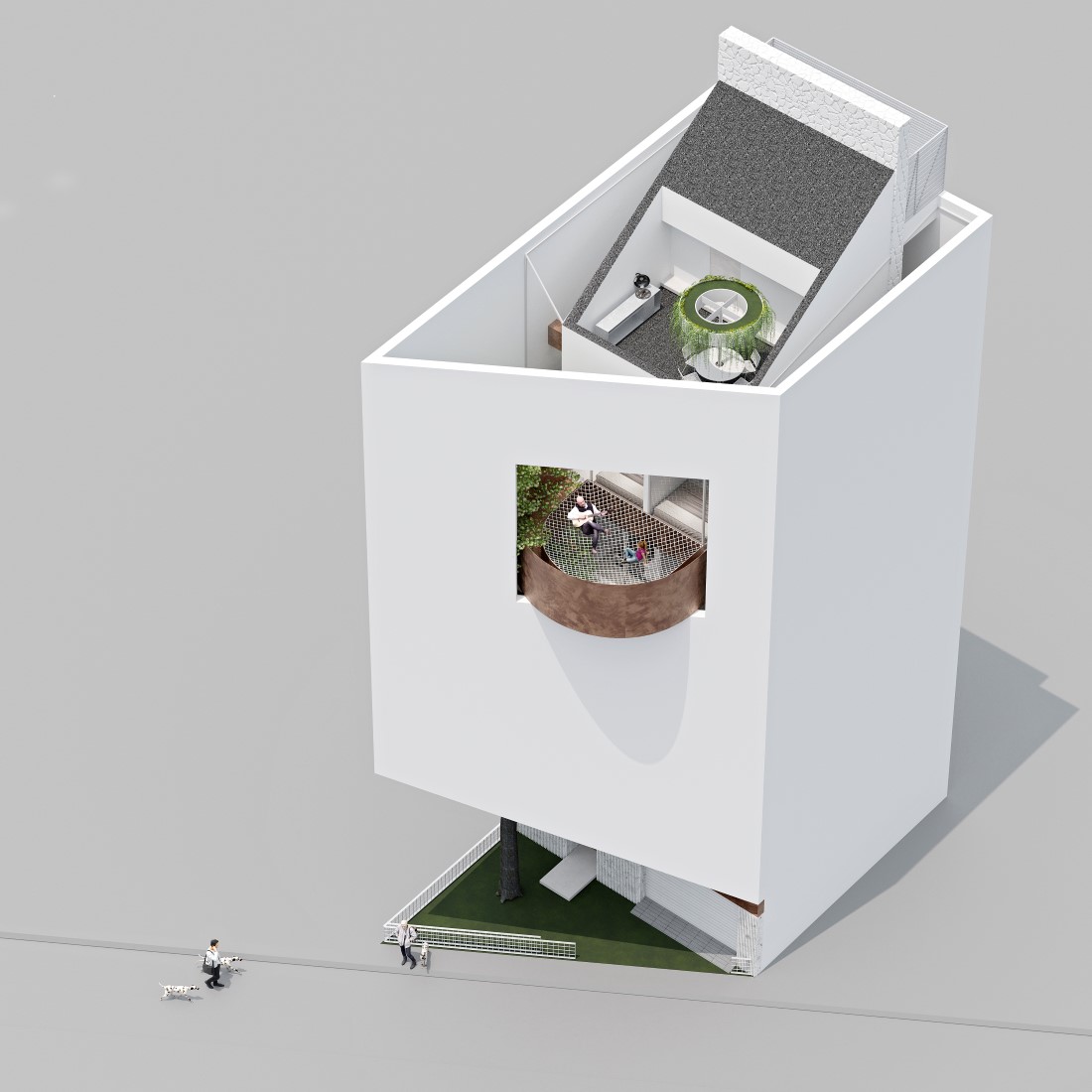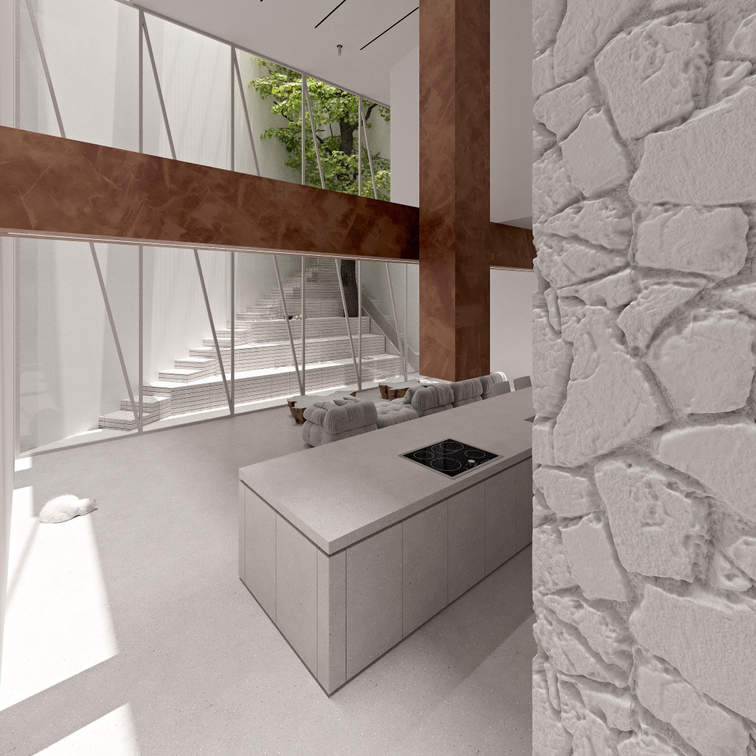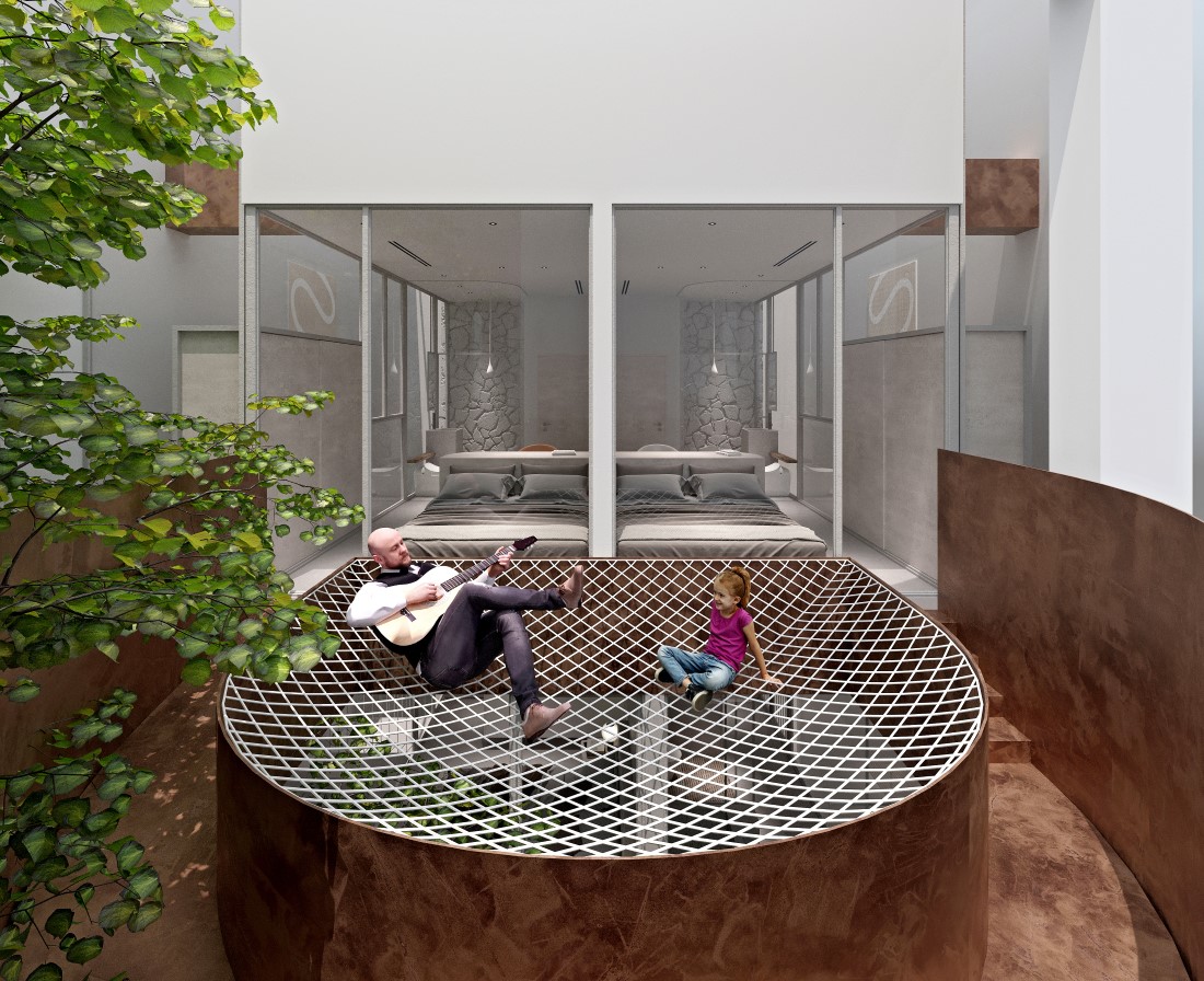 KMK house là dự án nhà ở độc lập. Với diện tích lô đất và số tầng cao tương đối đặc trưng ở Hà nội. Kiến trúc ngôi nhà được thiết kế để đáp ứng mong muốn có một ngôi nhà an nhiên, không bị dòm ngó bởi những hàng xóm đối diện. Ánh sáng tự nhiên và thông gió được lấy từ khoảng không độc lập bao quanh lõi ngôi nhà. Nói cách khác, ngôi nhà xây lùi vào so với đất 1 khoảng thở và hàng rào được xây cao hết lên 5 tầng. -Năm thiết kế: 2023 -Hạng mục thiết kế: Kiến trúc & Nội thất -Quy mô: 90m2 -Số tầng: 6