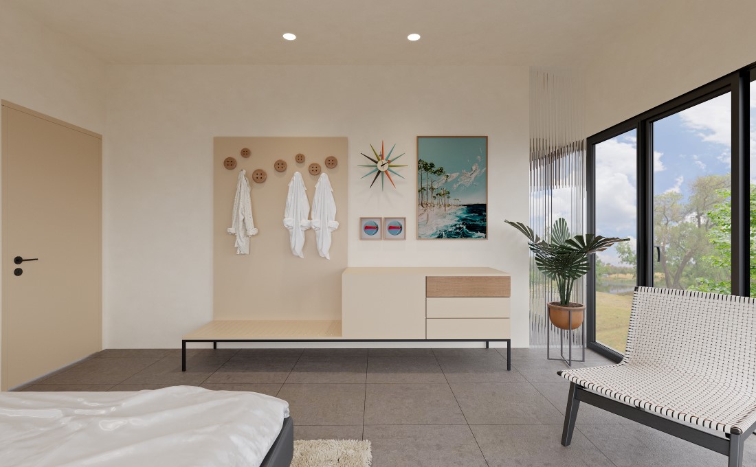 Dự án là nhà nghỉ dưỡng tư nhân ở Nha Trang. Với tiêu chí đặt ra phải hưởng được hết khung cảnh thiên nhiên của vùng đất du lịch. Sử dụng vật liệu thân thiện và màu sắc sử dụng là màu của đất cát. -Địa điểm: Nha Trang, Khánh Hoá, Việt Nam -Năm thiết kế: 2024 -Quy mô: 128m2 -Số tầng: 3